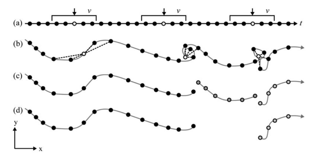 To identify static and moving segments of trajectories I followed an adapted four step processing (Laube and Purves 2011) (Figure 2).